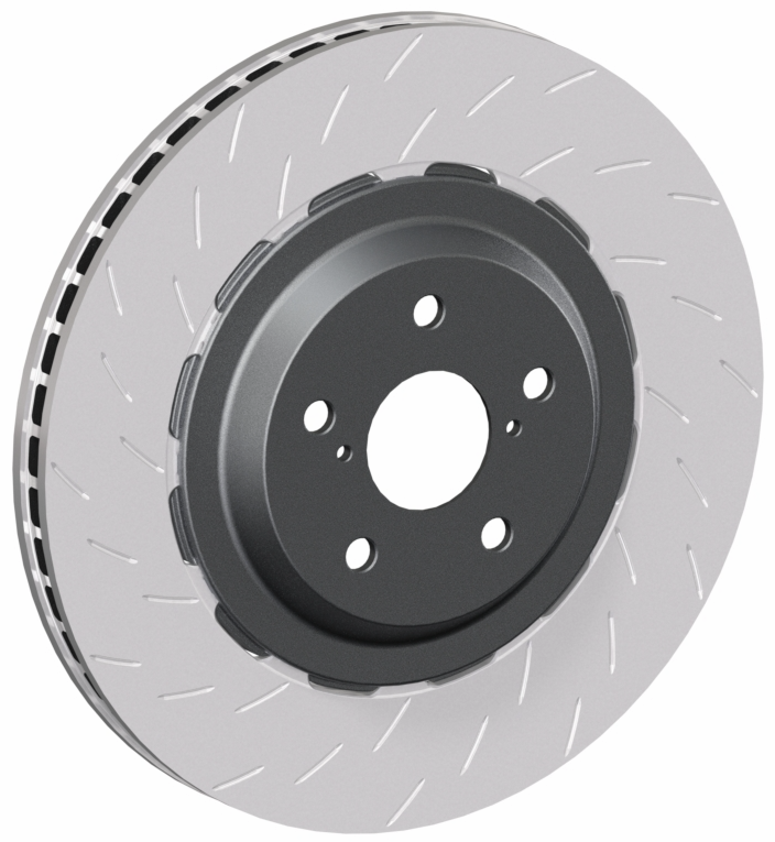 - Reduced mass on disc connecting flanges, which reduces thermal distortion (more specifically, coning) at race temperatures. Reduced coning allows the pads to sit flatter on the disc, which better utilizes the available radial depth. There is better pad force distribution and the brakes will run cooler, reducing hot spots on the disc. This will also have the benefit of reduced taper wear of the pads.