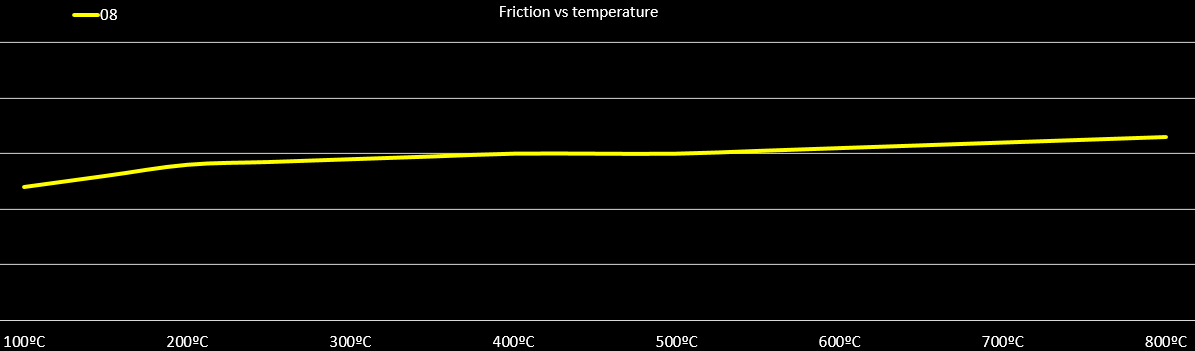 08 compound has gained immediate favour in endurance sportscar and GT racing and also in endurance production car racing due to its performance in applications where smooth initial bite is a must. 08 has a slight friction rise with temperature with excellent release and modulation characteristics. Very low abraded disc wear with a fine grey slate like disc finish, similar to 01. Despite its considerable performance, 08 wears the longest of all PFC pads and easily matches wear of the other competitors with much higher bite.