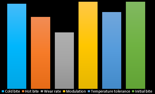 The 333 has a strong initial bite with an emphasis on consistent friction levels throughout a stop.